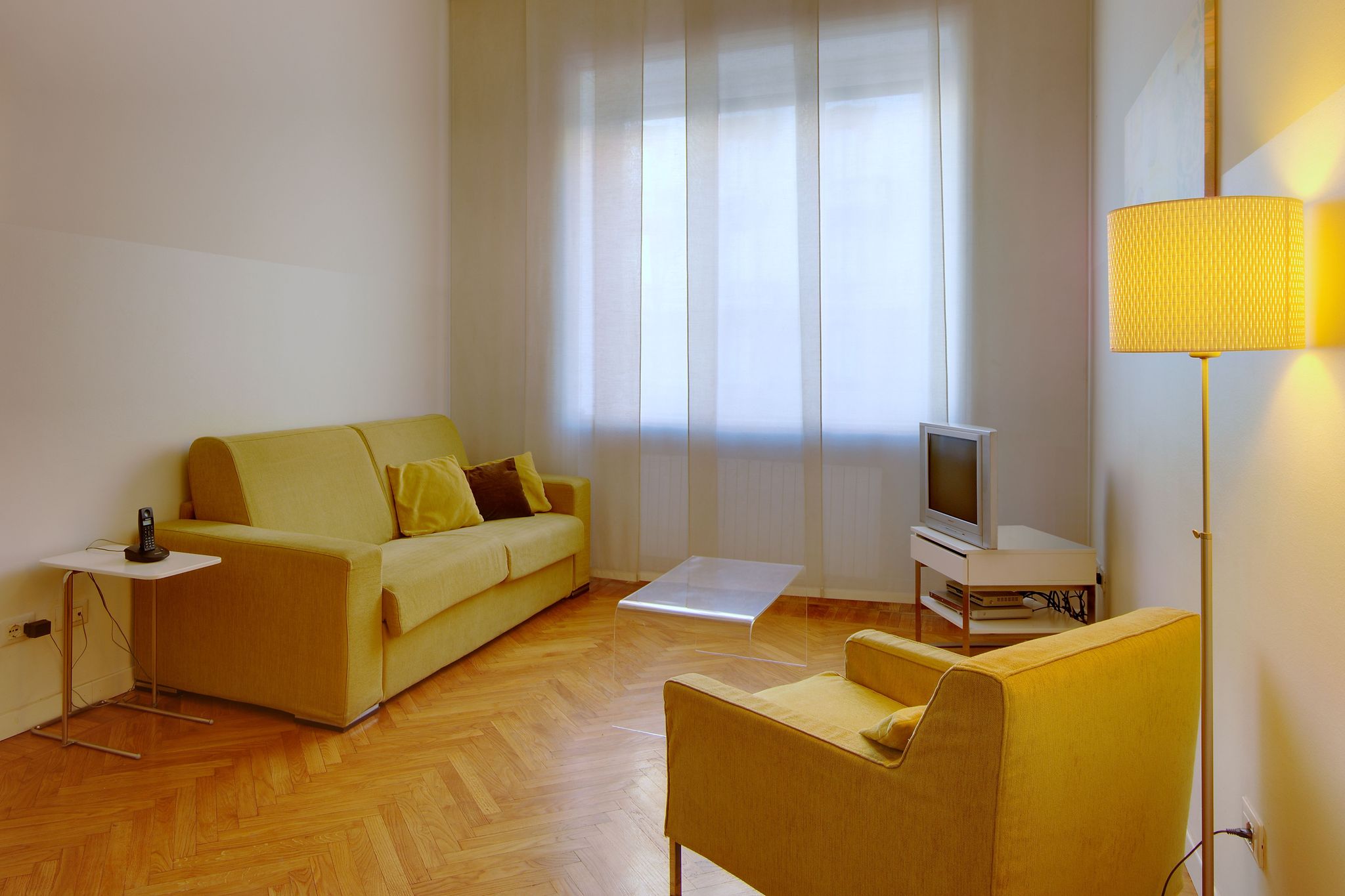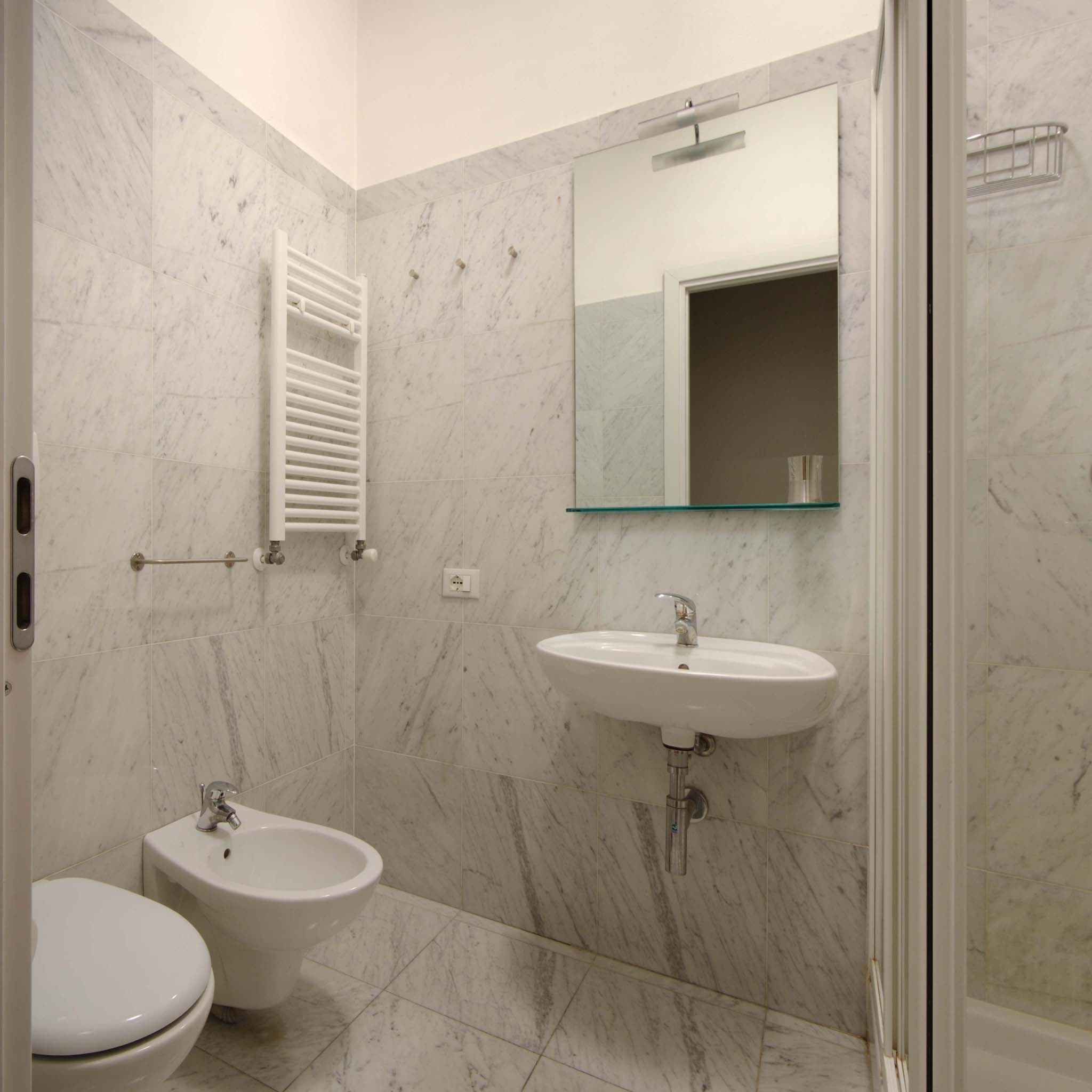 Sie hat einen doppelten Ausblick auf die via Pergolesi und auf den ruhigen Innenhof, direkt neben dem Hauptbahnhof Centrale und der Piazza Caiazzo. Sie befindet sich am ersten Stock, erreichbar durch zwei Aufzüge und mit den Treppen. Das Gebäude hat tagsüber Portier-Service in der Lobby und 24-Stunden-Videoüberwachung.